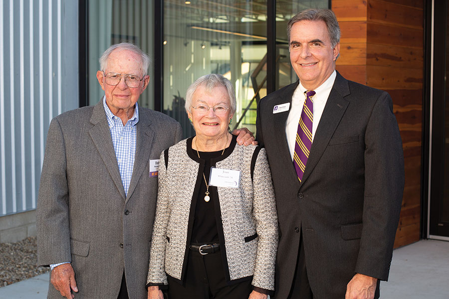 Pictured above: Joan and Dick Whitcomb pose with Associate Vice President, Principal Gifts Mark Wilson at the Whitcomb Art Center dedication ceremony.