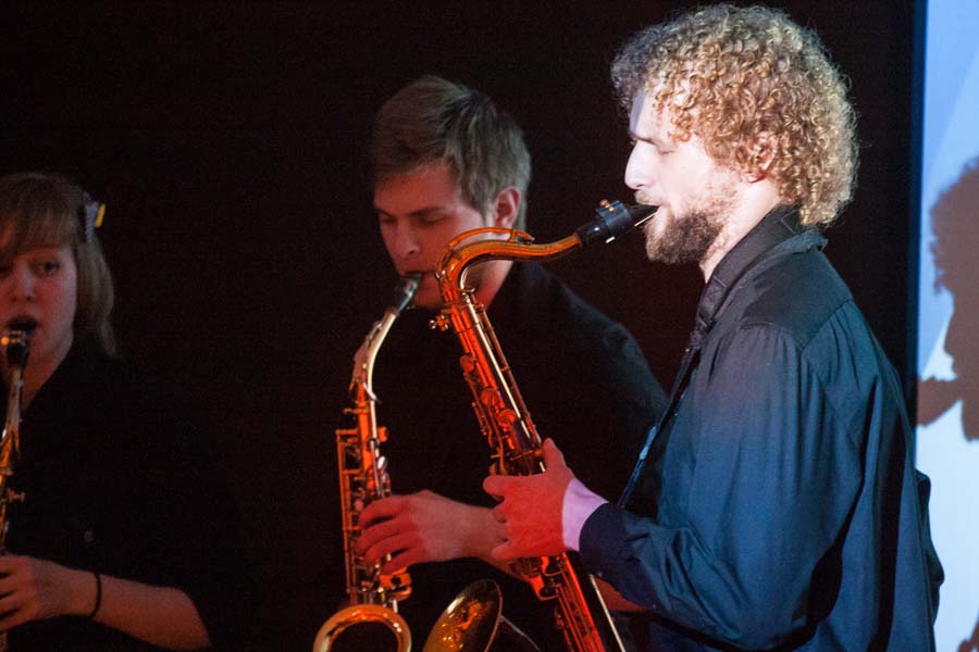 Kailee Gawlik, "Creating Monsters: The Use of Silence in Maria Schneider's ‘Dance You Monster to My Soft Song'" ~ I define three types of silence and want to understand how they affect the overall mood. In "Silence as Release," quartal chords create an otherworldly feeling, and moments of silence give the audience pauses to relax... In "Silence as Tension," moments of silence during the trumpet solo leave a lot of open space. This throws the listeners off balance. "Silence as Suspension" is not the absence of sound, but the absence of rhythmic and harmonic motion... I plan to pursue advanced degrees in musicology, to become a professor at a small liberal arts college.