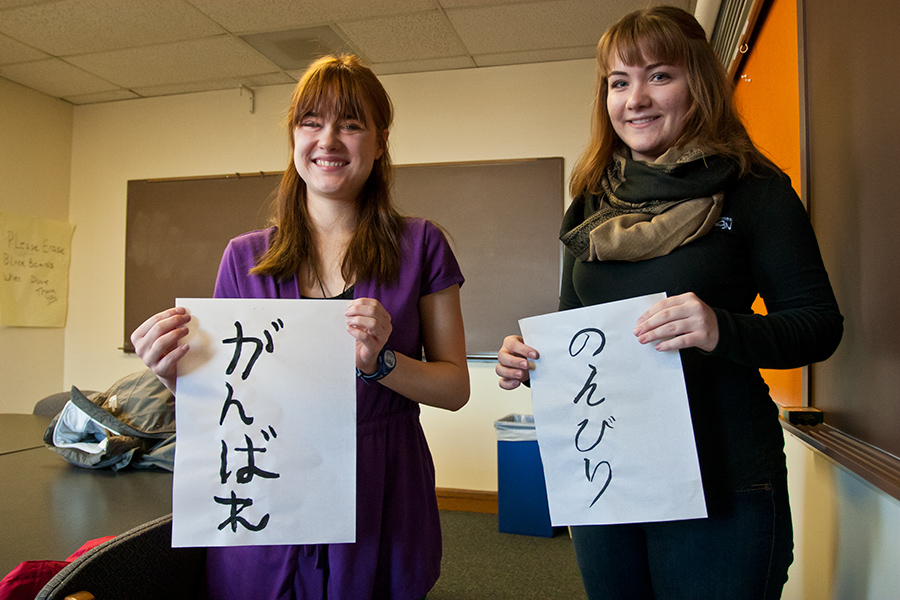 "It's neat to have a hands-on experience that also gives you the cultural dimension," said student Bethany Larson. She wrote "nonbiri," which translates roughly to "be optimistic." The sophomore from Fairfield, Iowa, is busy completing applications for study-abroad programs.