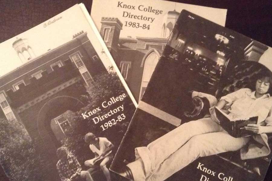 In a lucky turn of events, the Birds' son John '15, who works in the Office of Admission, stumbled across some old Knox student directories around the time Admission was moving to Alumni Hall. By using the directories, John tracked down his dad's box number. (Photo below: Knox student directories from the 1980s.)