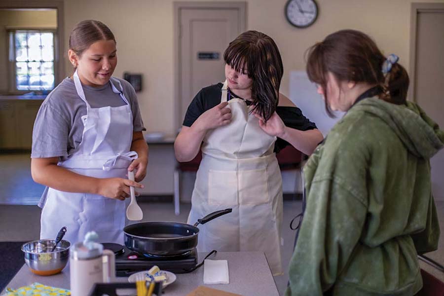 As an elementary education graduate, Ellie Courtemanche ’25 was able to get her first solo teaching experience at College 4 Kids, leading the Kitchen Adventures class.