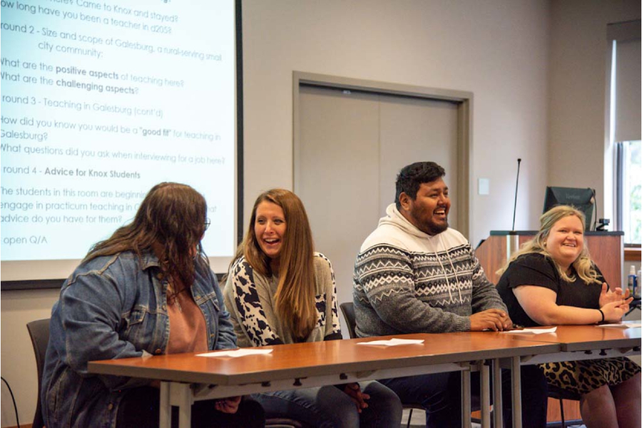 To kickstart the discussion, four local educators met with about two dozen Knox education students in the Trustee's Room to hold a broad Q&A session on October 19, 2023. The discussion centered around the realities of teaching in Galesburg District #205. This will be the first of a number of panels planned throughout the year.