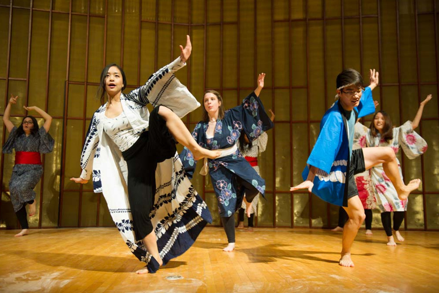 Michiko Li, a Knox sophomore from Japan, staffed the Japan culture booth and choreographed one of the dances performed at the cultural showcase. She and another student, senior Mina Kemmisaki from Japan, each wore a yukata, a Japanese casual summer robe.