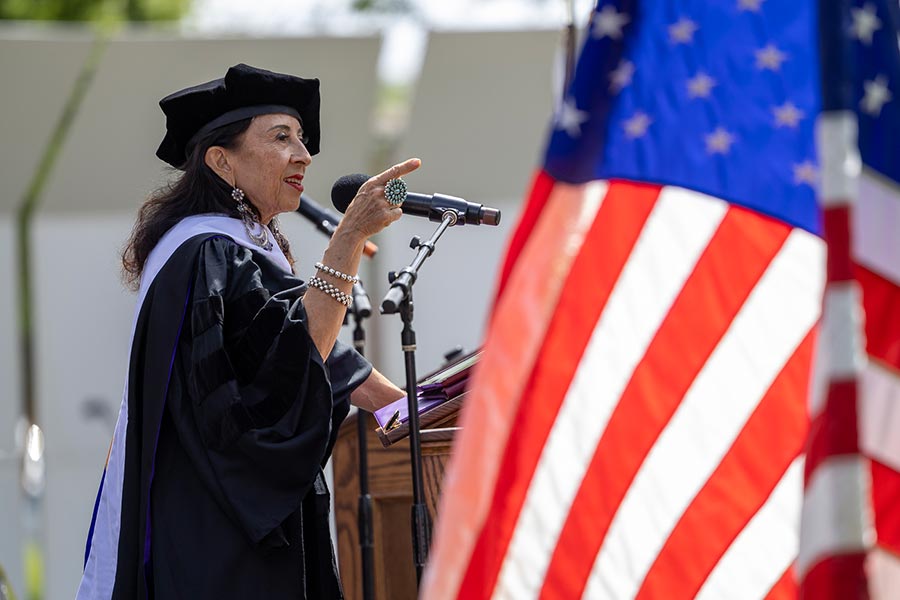 Hinojosa shared a powerful personal anecdote about her family's immigrant journey and the value of embracing change and self-belief. She left the graduates with advice to share their dreams with their families and to learn about their family’s journey to where they are today.
