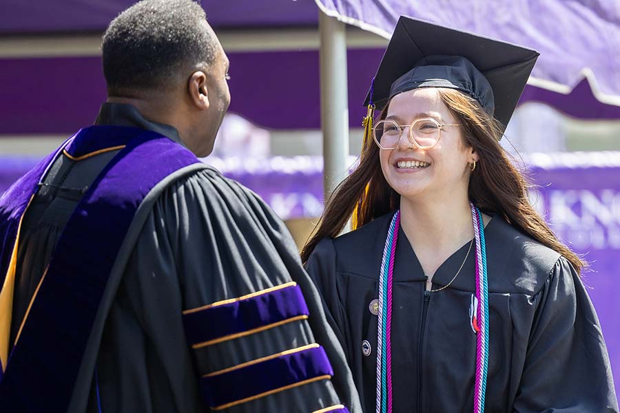 Joining the Knox community in 2020, the class navigated virtual classes and experienced unique versions of campus traditions like Pumphandle and Flunk Day. Knox College President C. Andrew McGadney recognized the significant events that took place both nationally and within the Knox community during their time as a student and applauded their ability to persevere.