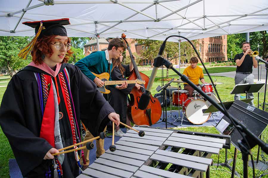 The Knox College community gathered on the South Lawn of Old Main on Sunday, June 9, 2024, to celebrate the College’s 179th Commencement ceremony. Family and friends from all corners of the world gathered to the sounds of the Cherry St. Combo to congratulate and celebrate the achievements of the 216 graduating students in the Class of 2024.