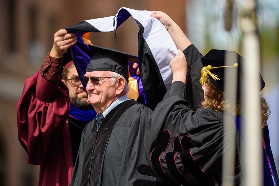 Three individuals received the College’s highest accolade, honorary degrees: Harlan "Harley" Knosher, Shahid Naeem, and Maria Hinojosa.