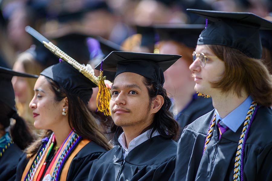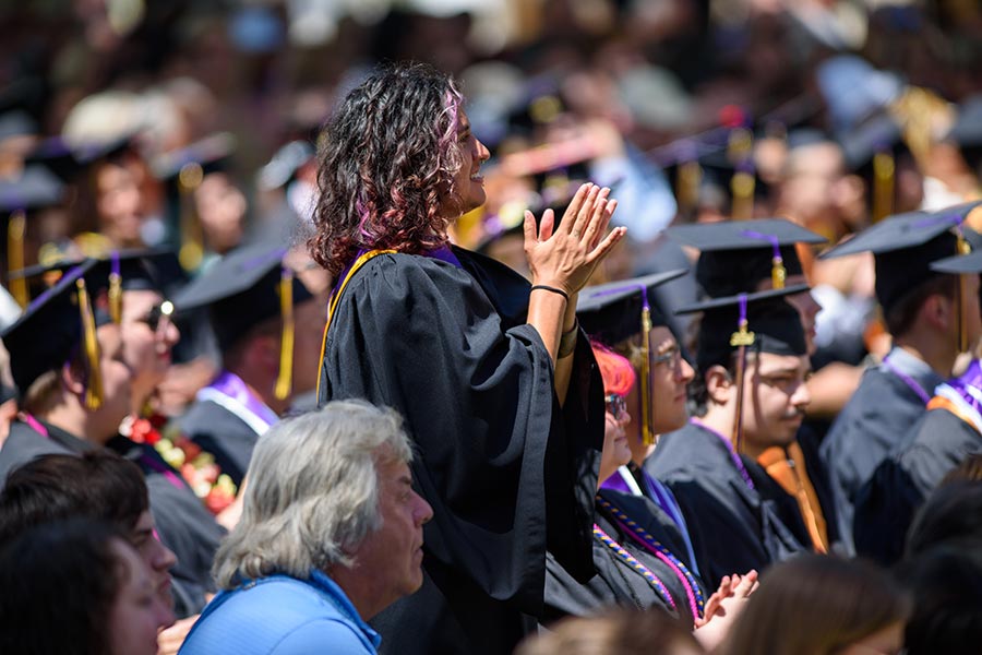 Finally, the time arrived for graduates to approach the stage and receive their hard-earned degrees. Provost and Dean of the College Michael Schneider took to the podium to announce each name, while a line of students in black gowns adorned with cords and customized mortarboards took their turn completing their journeys.