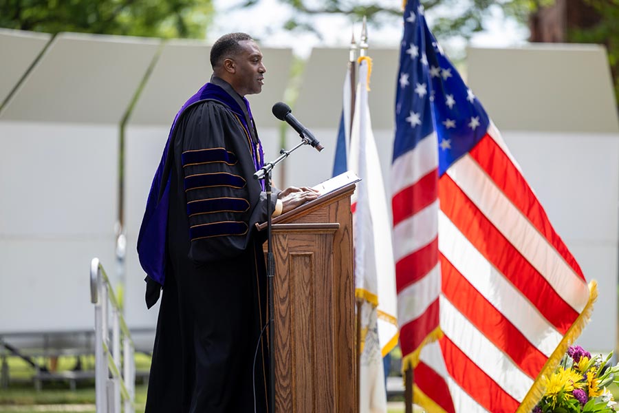 Throughout the ceremony, speakers acknowledged the significance of the day, the culmination of four years of hard work, and reflected on the class’s journey. Chair of the Knox College Board of Trustees Tony Etz '83 asked the graduates to remember the smaller, meaningful moments at Knox, as these moments, he emphasized, are the essence of the Knox experience and will be carried with them into the future.