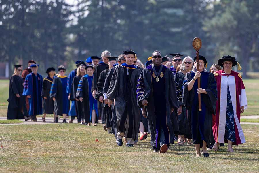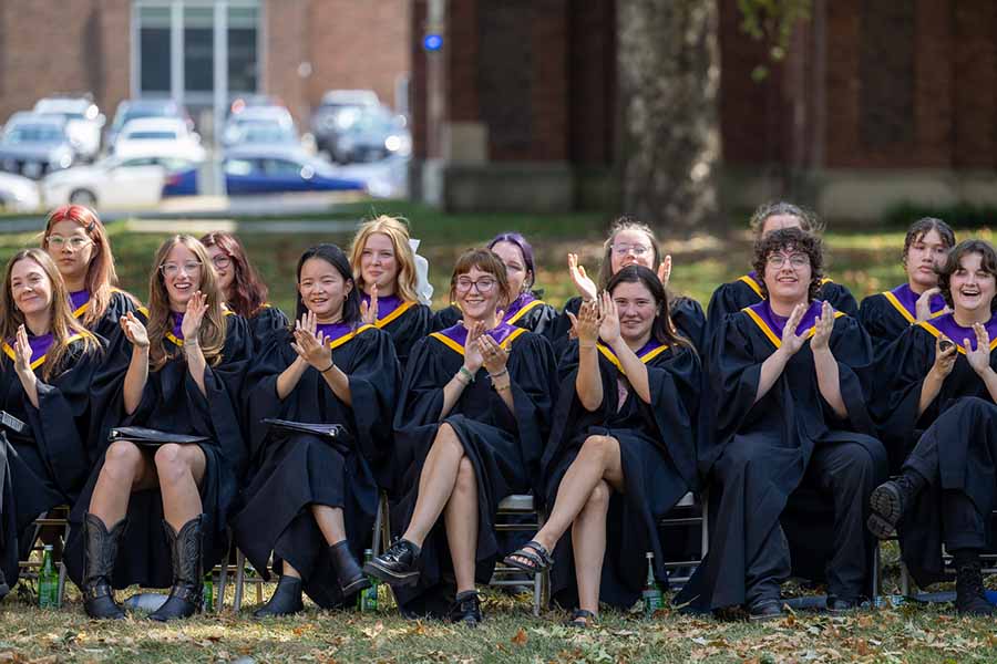 Associate Professor of Physics Mark Shroyer delivered the Convocation Address, invoking the College’s history and connection to nature. Shroyer tied those relationships together, asking what a liberal arts education means and challenging students to go beyond the standard AI definition. He encouraged students to explore campus, nature, and the educational opportunities before them, not letting fear prevent them from getting the most out of their journey.