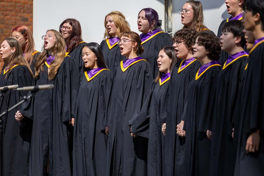 The Knox College Choir, under the direction of Assistant Professor of Music and Director of Choral Activities Bram Wayman, led the audience in singing “Hail to Alma Mater” to conclude the ceremony.