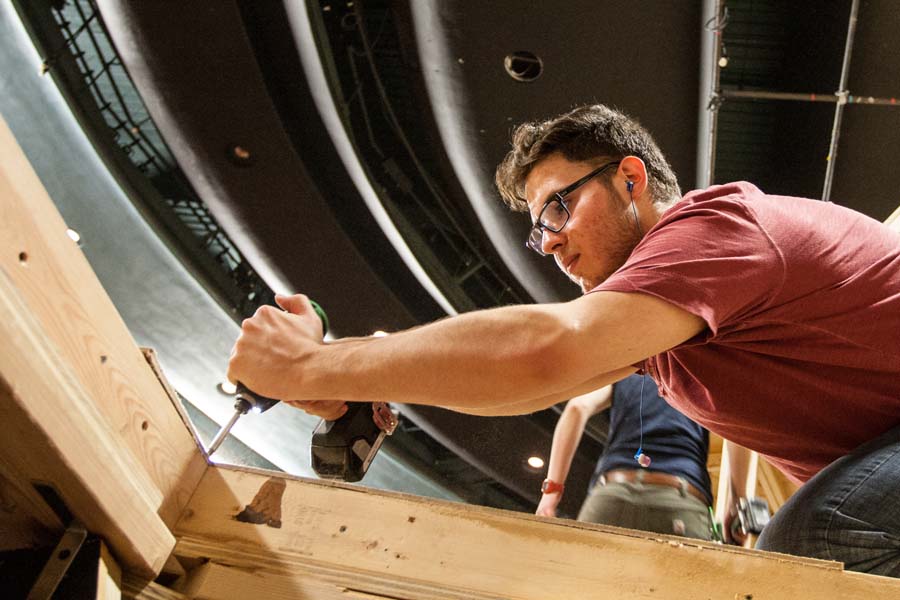 "It's almost 24/7," said student Brady Comenduly, who's acting in one play, working on sets for another and running the social media publicity operation.