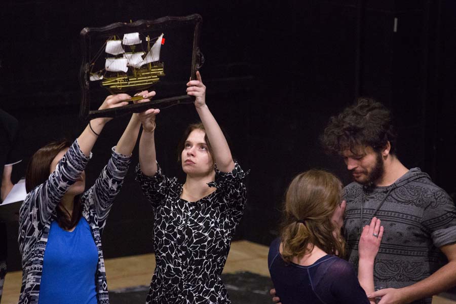 Top of page and below, students build sets and rehearse for Repertory Theatre Term.