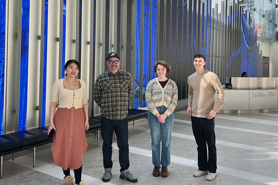 Knox College graduate Ingrid Wasmer ’21 and current student James Adamson '25 debuted their art installation in Chicago on May 3, 2023, alongside live music and an energetic, excited crowd. The installation was chosen in the 150 Media Stream contest in 2022 and the pair have been hard at work completing it since.