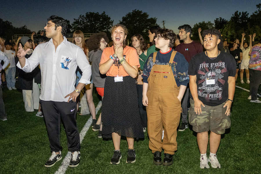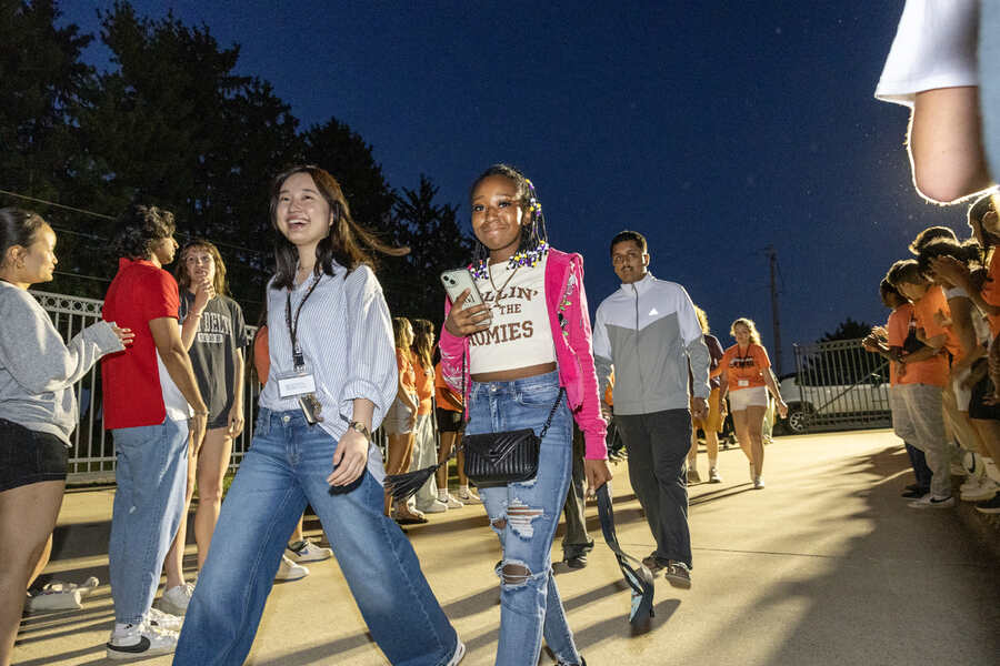 Students shared goodbyes with their parents and loved ones before setting off for their first night at Knox. The day concluded with students gathering in the Knosher Bowl, home to the Prairie Fire football team, for PlayFair, an annual event that allowed students to meet one another through a series of activities aimed at socializing.