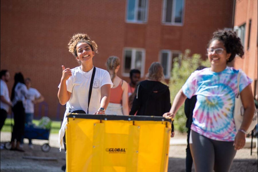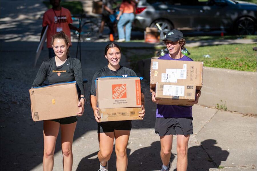 The Class of 2028 arrived in multiple waves to begin New Student Orientation, with fall athletes arriving on August 15 and 16, international students on September 1, and the remainder of the new students on September 3. Students were greeted by College staff, orientation leaders, and Prairie Fire athletes, who assisted them and their families move into residence halls and navigate their first day on campus.