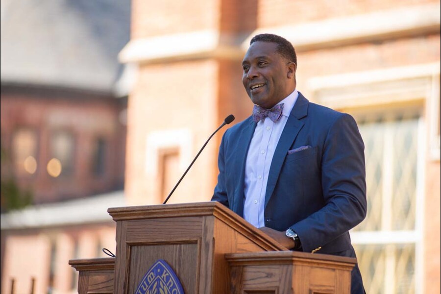 Later, on the South Lawn of Old Main, students and their families gathered for the official Welcome to Knox event, featuring speakers President C. Andrew McGadney, Provost and Dean of the College Michael Schneider, and Vice President for Student Development MarQuita Barker. Each delivered inspiring messages and outlined goals for the academic year.