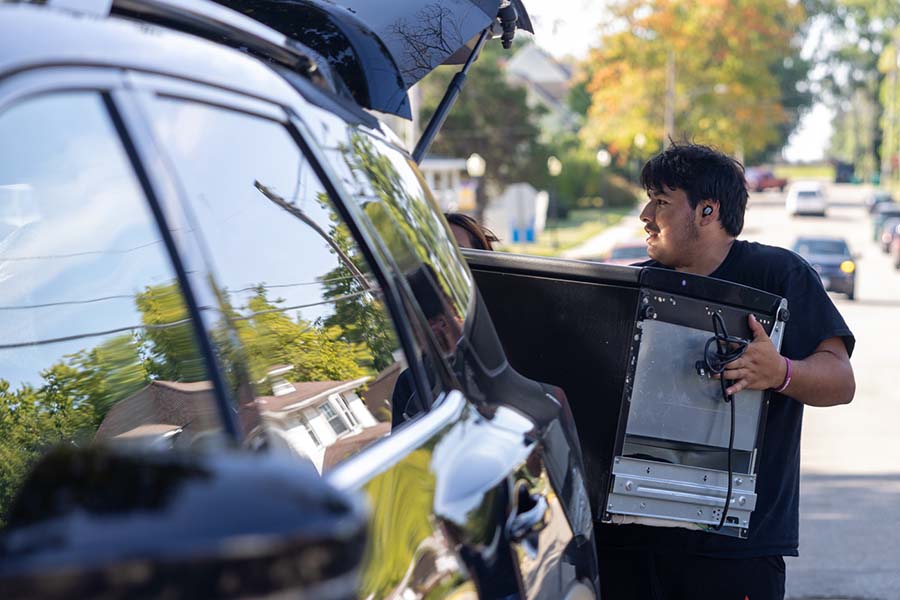 Once checked in, students and families found plenty of help, as student-athletes and resident assistants helped unload vehicles, provide direction, and carry items to rooms. In fact, John Flores ’29, football player and business major from Fontana, California, carried a dozen mini fridges to various dorm rooms by 10 a.m.