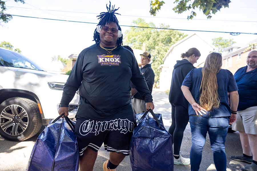 After bidding farewell to family and friends, students ended the day at the Knosher Bowl, home to the Prairie Fire football team, for PlayFair, an annual event that allows students to meet one another through a series of activities aimed at socializing. New Student Orientation and the chance to meet staff, faculty, and new classmates continue throughout the week as more students return to campus with the annual Knox tradition of Pumphandle taking place on Sunday, September 14, at 4:30 p.m. Classes start Monday, September 15, with Opening Convocation taking place at 11 a.m. on the South Lawn of historic Old Main.