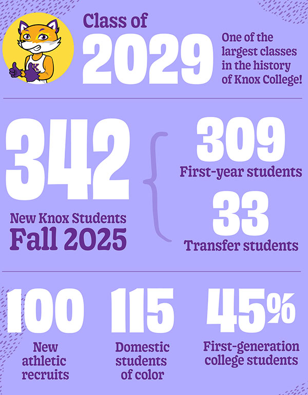 Knox College began the 2025-26 academic year welcoming more than 340 new students, one of the largest classes in College history, representing 32 states and 20 countries.