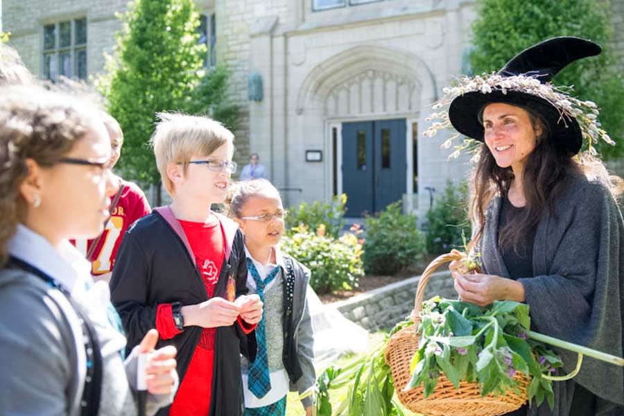 In a class on herbology, Tina Hope told young students about the healing properties of certain plants. Plantago major, also known as the common plantain or Band-Aid plant, is good for soothing insect bites and bee stings, she told them before they headed out to search for plants on campus.