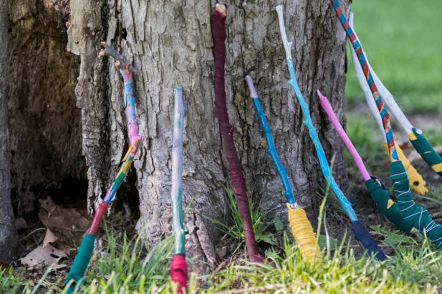 Children who stopped by the public library's table created Harry Potter eyeglasses and applied temporary tattoos in the shape of a lightning bolt scar. At the Key Club's table, children selected, decorated, and painted sticks that served as their magic wands.