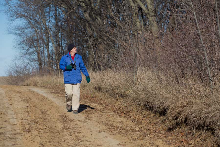 While hiking along a dirt road to check a stand of trees surrounded by farmland, Allison was surprised to hear, then see, a Killdeer—"Normally it should have migrated by this time of year."