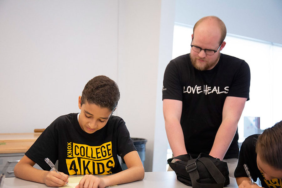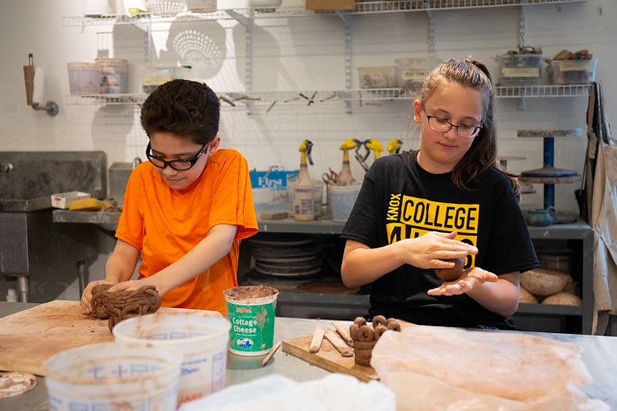 More than a dozen recent Knox graduates and current students played key roles in College for Kids. Two—Errol Kaylor '19 in the Creating Computer Animations and Games class and Lila Johnson '20 in the Ceramics class—served as instructors. Others were College for Kids fellows who worked as teaching assistants and helped with logistics inside and outside the classroom.