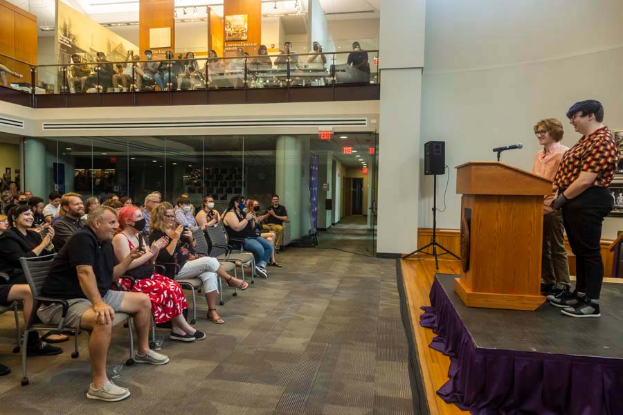 Many of the attendees for the reception were part of that “village.” Alex Martin, a creative writing major from Round Rock, Texas, was accompanied by her mother, Virginia Pursley Martin, and grandmother, Carolyn Pursley. “She always had her nose in a book,” Pursley said of her granddaughter. For Martin, a “stray email from Knox” sparked an interest in the College, followed by strong scholarship opportunities and the creative writing program.