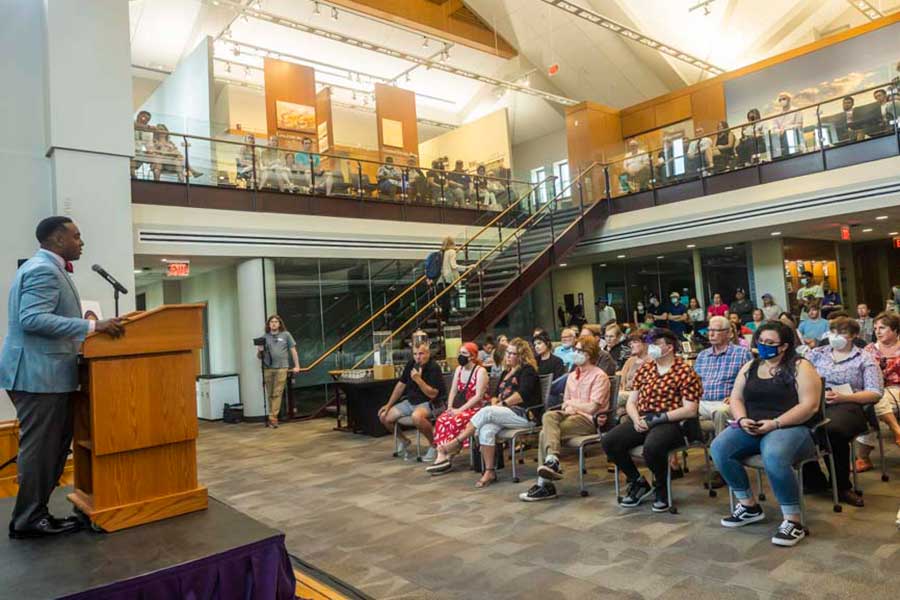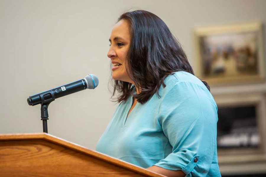On Saturday, June 4, Knox College held its 7th annual First-Generation Reception, recognizing the unique challenges and successes of graduating seniors who are the first in their family to complete a college degree. Tianna Cervantez, lecturer in anthropology-sociology and associate dean/director of intercultural life, addressed the audience, speaking to her own experience as a first generation Knox College student, noting that she “learned how to navigate new spaces,” without the same kind of support system her second-generation peers had.