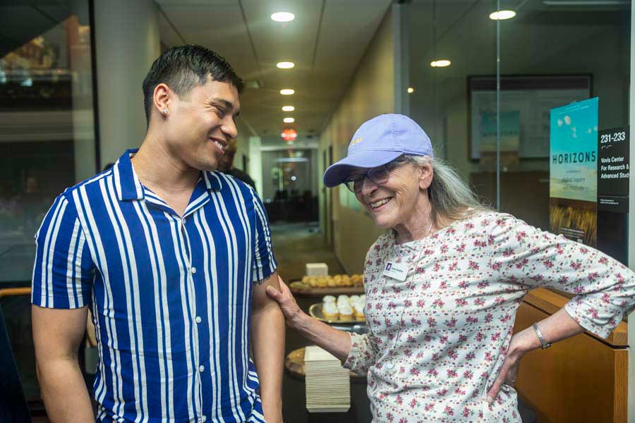 Domanique Rahman and Leonard Monterey, both 2019 first-generation Knox graduates now living and working in Chicago, returned to campus to see their friend Himani Patel graduate. They spoke glowingly of Patel, who is now headed to dental school. “She deserves all the support she gets,” said Monterey. Monterey recalled his high school counselor, who recommended Knox to him, even though he was seriously considering larger public Illinois universities. A resident assistant during his time at Knox, Monterey now serves as a resident director at University of Illinois.