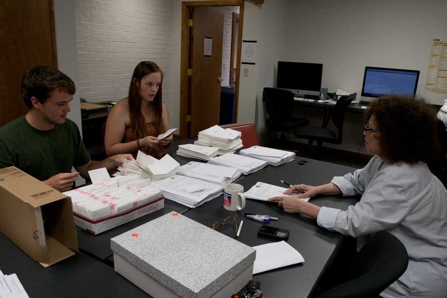"The biggest findings were a third of the people were doing better than they had at Maytag," said Marilyn Webb, distinguished professor of journalism and chair of Knox's journalism program. She served as project and editorial director. (Photo above: Marilyn Webb, at right, works with students on The Maytag Project.)