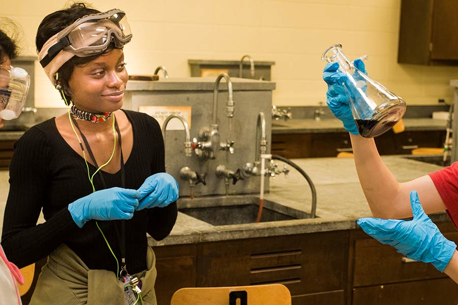 For Malik Hamilton '19, who is researching the formation of liquid crystals at room temperature, facing adversity has been his most memorable experience at Knox so far. "Dissolving a specific salt can take up to a week. That delays the amount of hands-on time with the project. My mentor has come up with an alternate way to get around that problem. I followed through with the plan and it seemed to have worked while producing high yields. Being able to overcome a problem with success has been a great feeling."