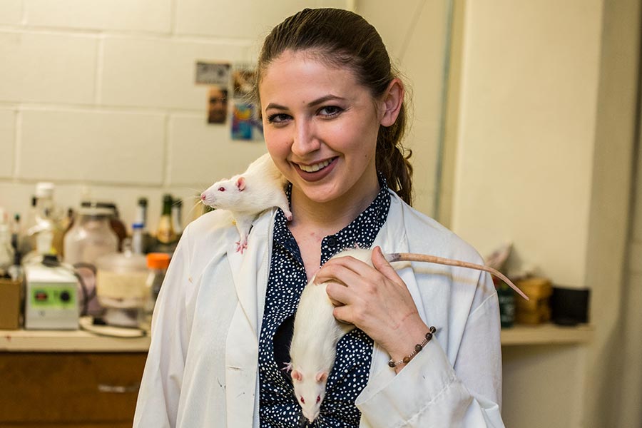 Natalie Haddad '19 has been working on bloodroot as a potential alternative treatment to oral cancer in canines. Her long-term goals include either a Ph.D. or DVM to practice veterinary medicine, and she says that her research will provide crucial hands-on clinical work and laboratory experience. "This research is basically allowing me to see what it'd be like to go into this field before I'm even done with undergrad, which is not something many people get to do."