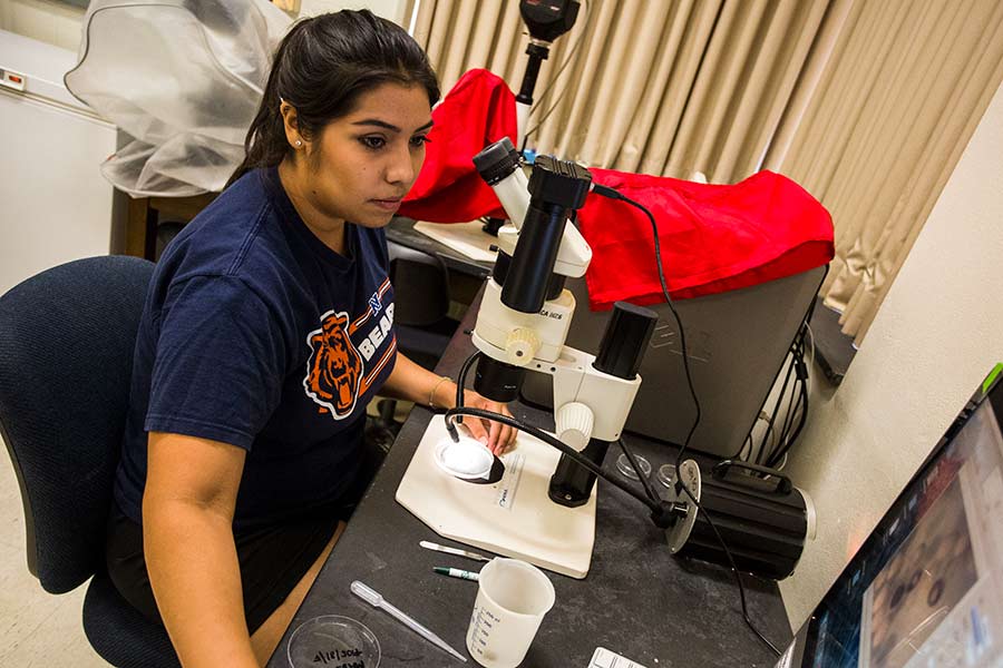 Junior Suzy Vargas studied mutations and their impact on immature egg cells, and credits the McNair program with taking her past her "comfort zone." Her faculty advisor, Judy Thorn, played a critical role in the skills she gained in the lab. "I wouldn't have been able to go through with this research without [Judy's] time and dedication."