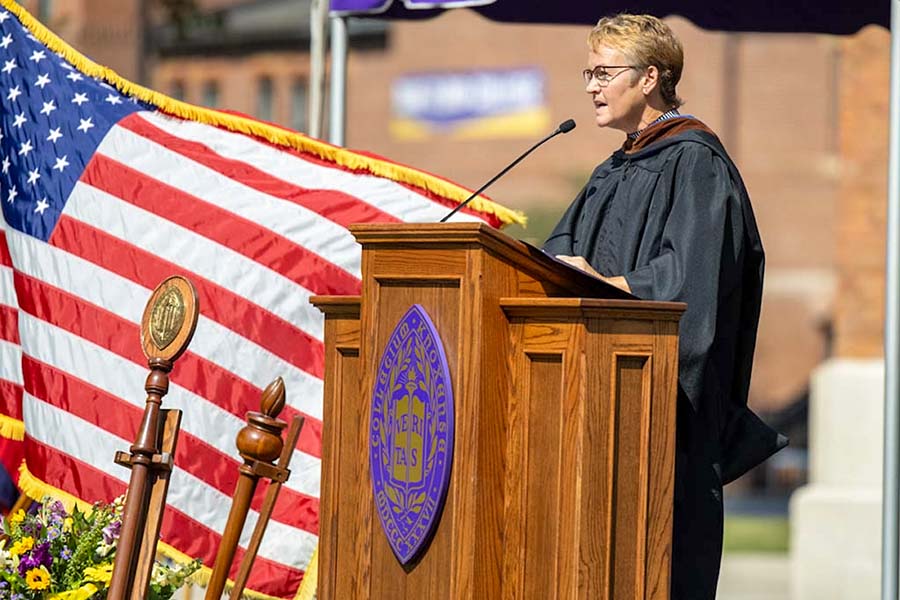 As the ceremony came to a close, Vice President for Student Development MarQuita Barker encouraged students to embrace their time at Knox. “Say yes when a friend invites you to a social experience, ask questions of faculty and staff–because that is where the true learning happens. You’ll be amazed at how much you grow over these next few years.”