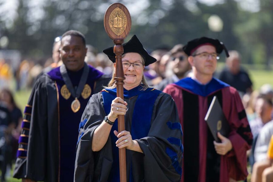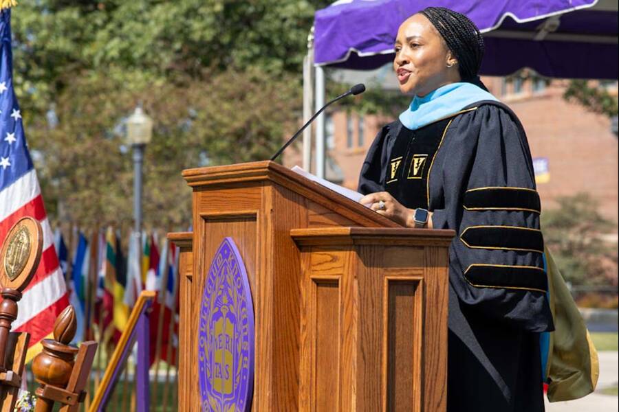 Chair and Professor of English Cyn Kitchen ’00 provided this year’s Convocation address which featured candid remarks about her decision to step out of her comfort zone and share her journey of overcoming fear and embracing the power of storytelling.
