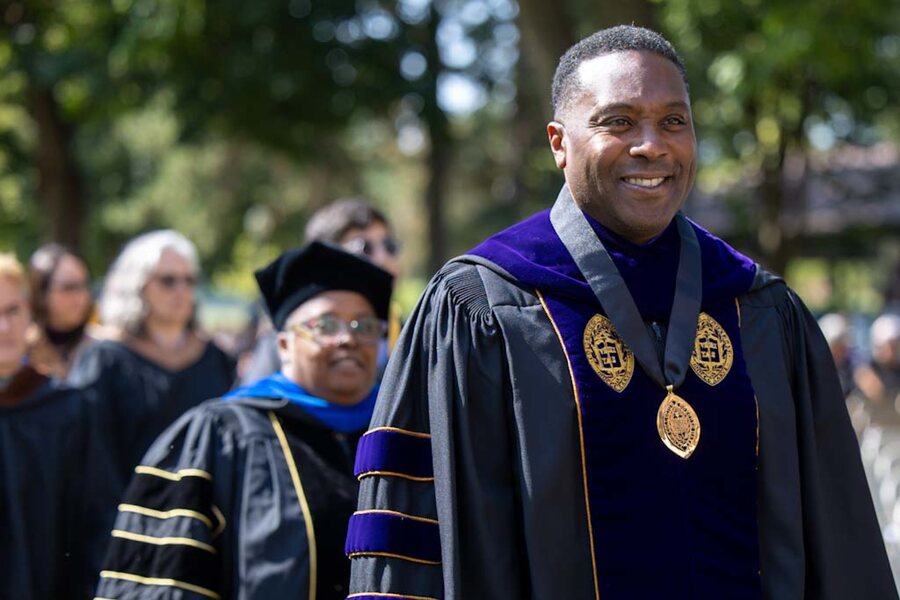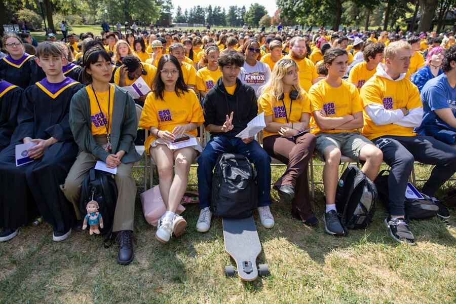 The ringing of the bell atop Old Main opened the 187th academic year at Knox College on Monday, September 9 on the South Lawn. During Opening Convocation, the College welcomed over 400 first-year and transfer students from across the United States and 30 countries.