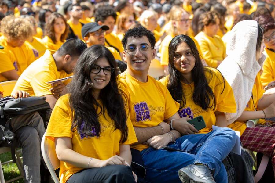 Student Senate President Sikandar Mateen ’26, a junior majoring in neuroscience and data science from Lahore, Pakistan, welcomed the Class of 2028 and over 30 transfer students. Mateen shared his experiences navigating college with the support of the Knox community.