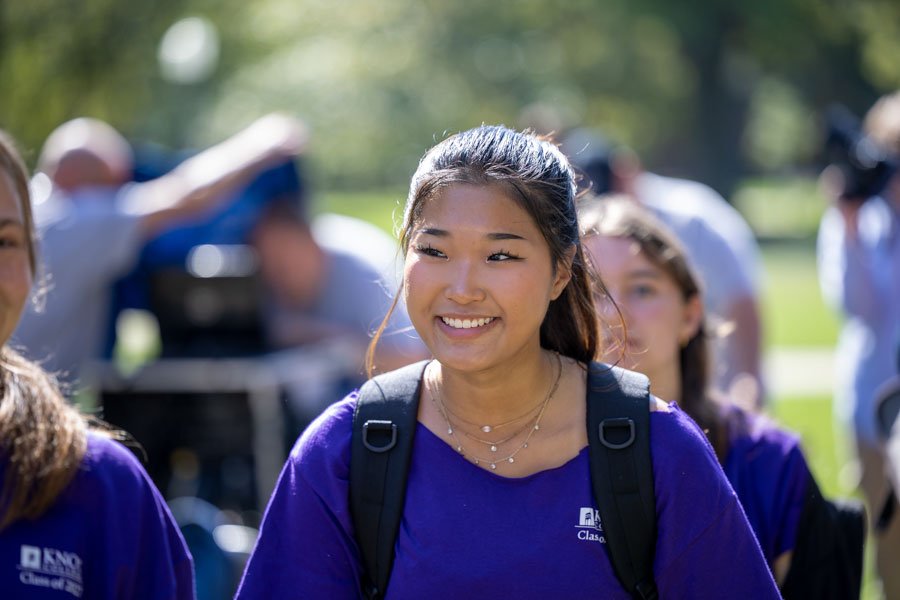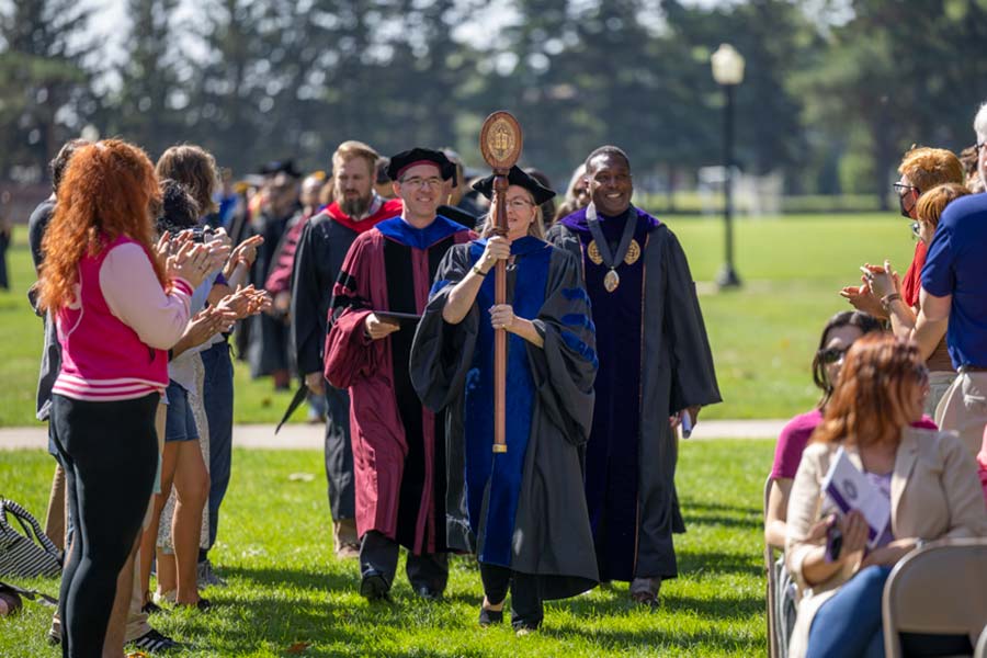 Members of senior staff, faculty, and the entire class of 2027 paraded down the center aisle between seats on the South Lawn as Knox College ushered in its 187th year during Opening Convocation on September 12, 2023.