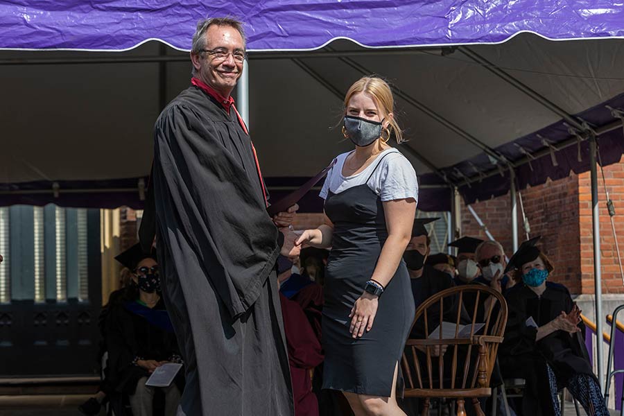 The Knox College community celebrated the start of the 2021-22 academic year at the traditional Opening Convocation ceremony, which featured the introduction of new faculty members and the presentation of awards to students, faculty, and staff.