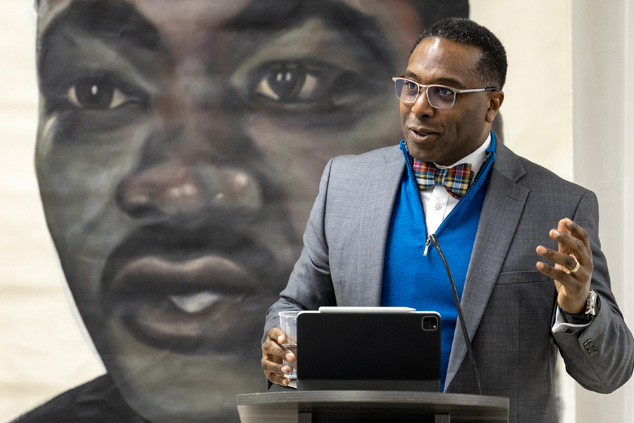 Knox College President C. Andrew McGadney provided the keynote address at Galesburg’s Dr. Martin Luther King Jr. annual holiday breakfast on January 20 at Cedar Creek Hall. The celebration, originally scheduled for January 15 but postponed due to weather, included moments of reflection, poignant essays, and song.