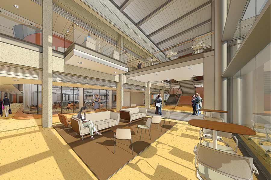The first phase of the five-phase renovation begins with the central core of the building. An expanded atrium will bring light into