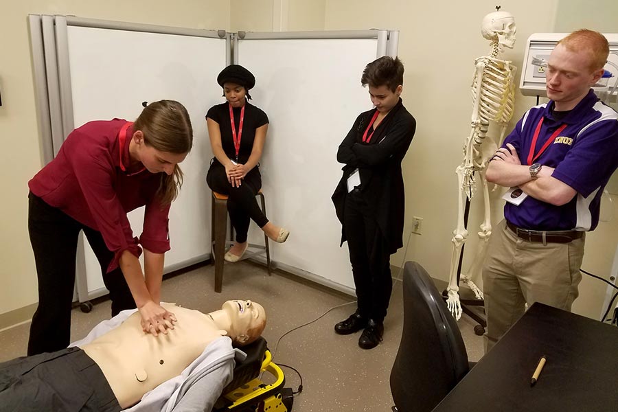 Six Knox College students who are aiming for careers in health care gained hands-on experiences in the medical field during a two-week summer immersion program at the Jump Trading Simulation and Education Center in Peoria.