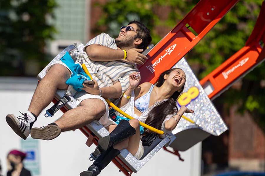 “I think for me, the most important thing to do is ask people what they would like to see that’s new and what we can bring back,” said special events coordinator and head of the Flunk Day committee, Nysa Phulwar ’26. “People said we have to bring back the zipline, so we have that back. We want everyone to have fun, so we thought about cool things people would enjoy. We have the zipline, a foam party, a DJ, face painting, rides, and other fun stuff. The entire committee worked very hard and they’re still running around doing their thing, there’s so much fun stuff."