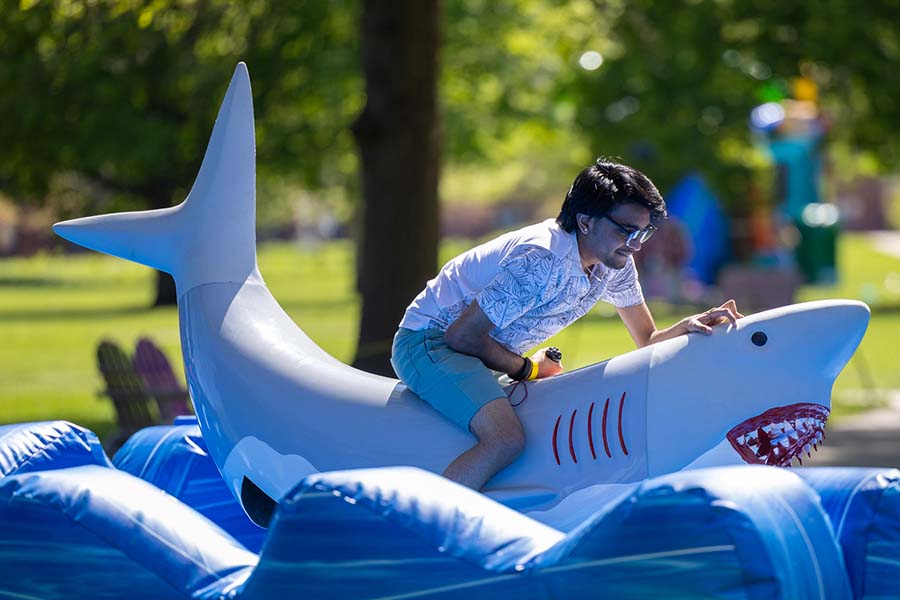 The morning and early afternoon featured carnival rides, inflatables, face painting, a foam party, a reptile zoo, water features, a mechanical shark for riding, lawn games, and even adventurous students creating their own fun.