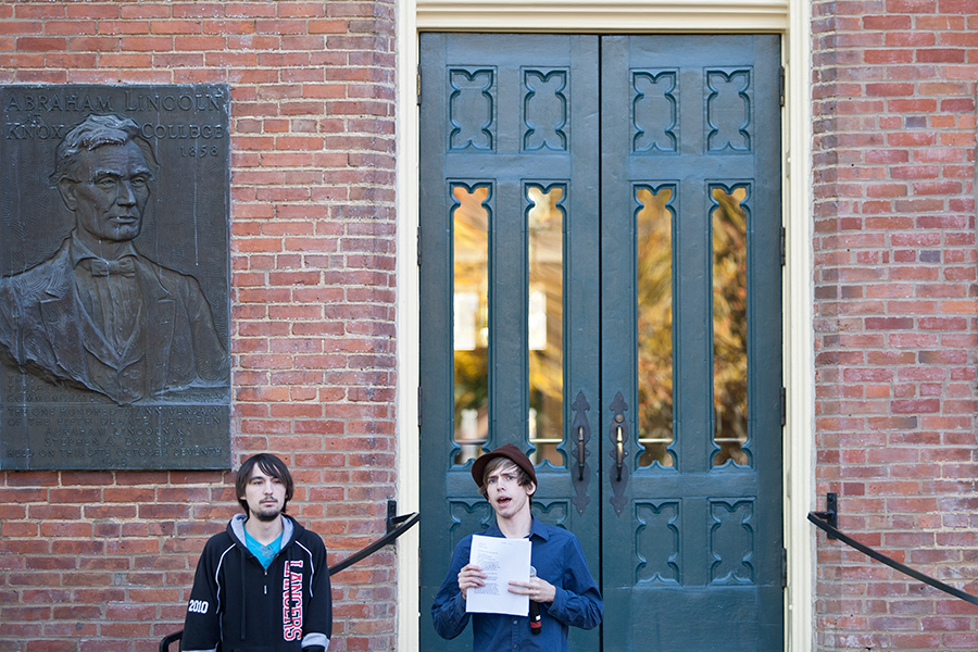 Following in the footsteps -- literally -- of Abraham Lincoln and Stephen Douglas, Knox College students organized, participated in, and observed debates about three prominent issues in U.S. politics: the economy, foreign policy, and health care.