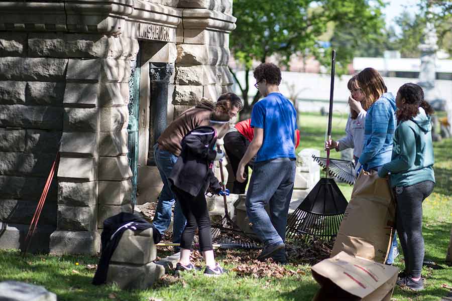 More than 100 students from Knox College and other schools spent their Saturday restoring a cemetery, sorting clothing, and volunteering throughout the Galesburg community and on the Knox campus during the College's Day of Service.