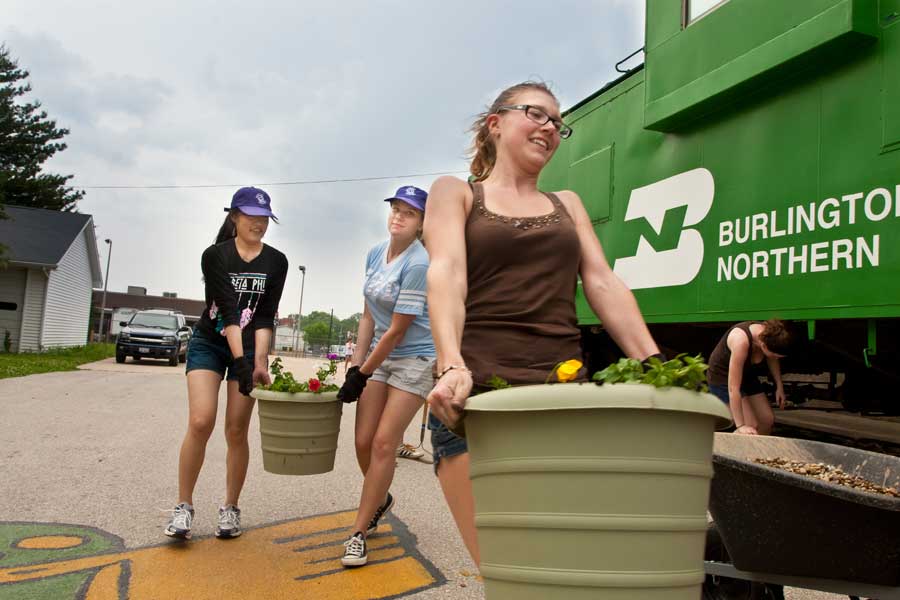 (Photo Above: Knox students volunteer at the Discovery Depot in Galesburg.)