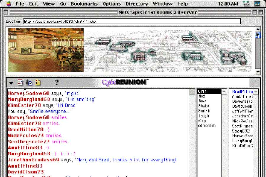 CybeReunion also offered an online bulletin board so people could leave notes for one another and coordinate visits, as well as the ability to send private messages.